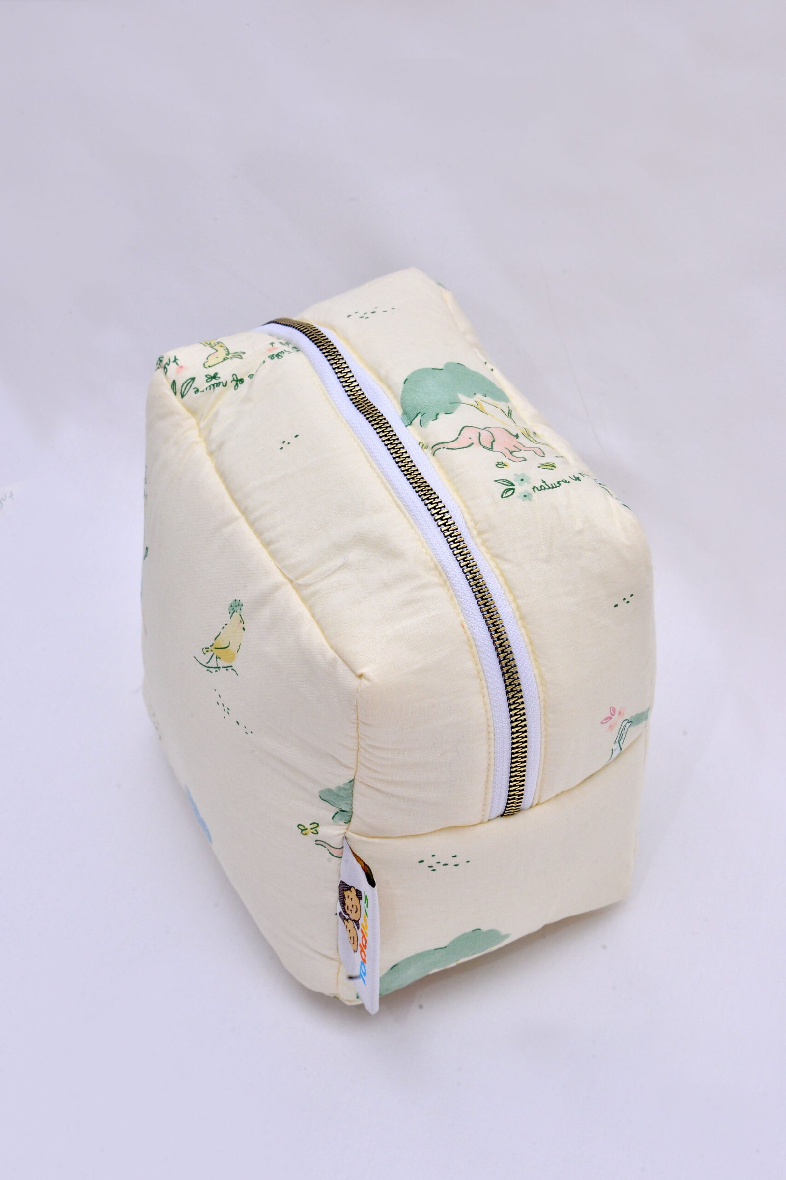 Grâce à sa forme géométrique stable, cette trousse offre une capacité de rangement surprenante tout en occupant un minimum de place dans votre sac à langer ou sur l’étagère de la salle de bain. Elle permet une organisation impeccable de vos petits objets, évitant qu’ils ne s’éparpillent au fond de vos bagages.